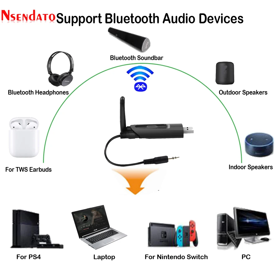 Product Name: Daleki zasięg Bluetooth V5.0 nadajnik z adapterem aptX krótki czas oczekiwania na sterownik telewizora darmowy usb 3.5mm bezprzewodowy adapter audio na PS4 PC