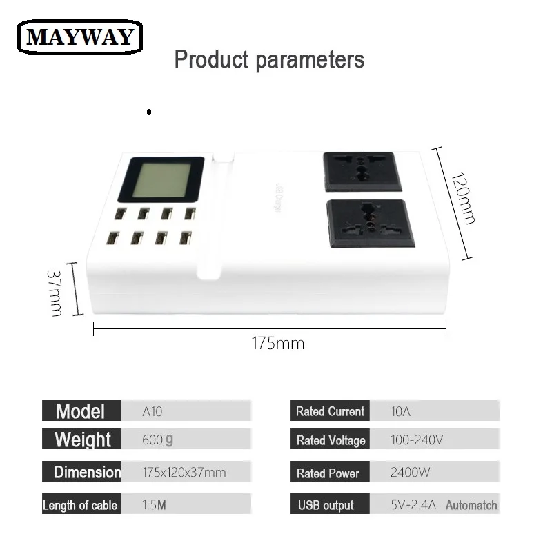 Product Name: Szybkie ładowanie ładowarka usb moc adapter podróżny przełącznik taśmy wyświetlacz ledowy z 8 gniazdo usb porty do usa wielka brytania ue wtyczka gniazda