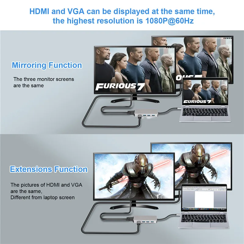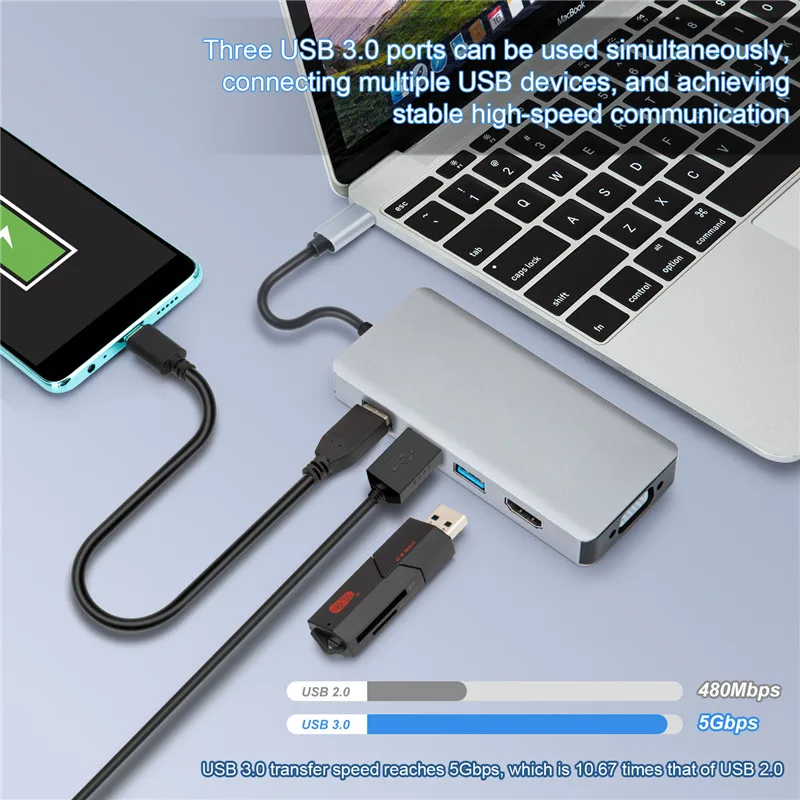 Product Name: Hub USB C 5 w 1 USB C HDMI VGA Dual przejściówka do wyświetlacza z USB 3.0*3 HDMI 4K VGA 1080P @ 60HZ Thunderbolt 3 typu C Hub do macbooka