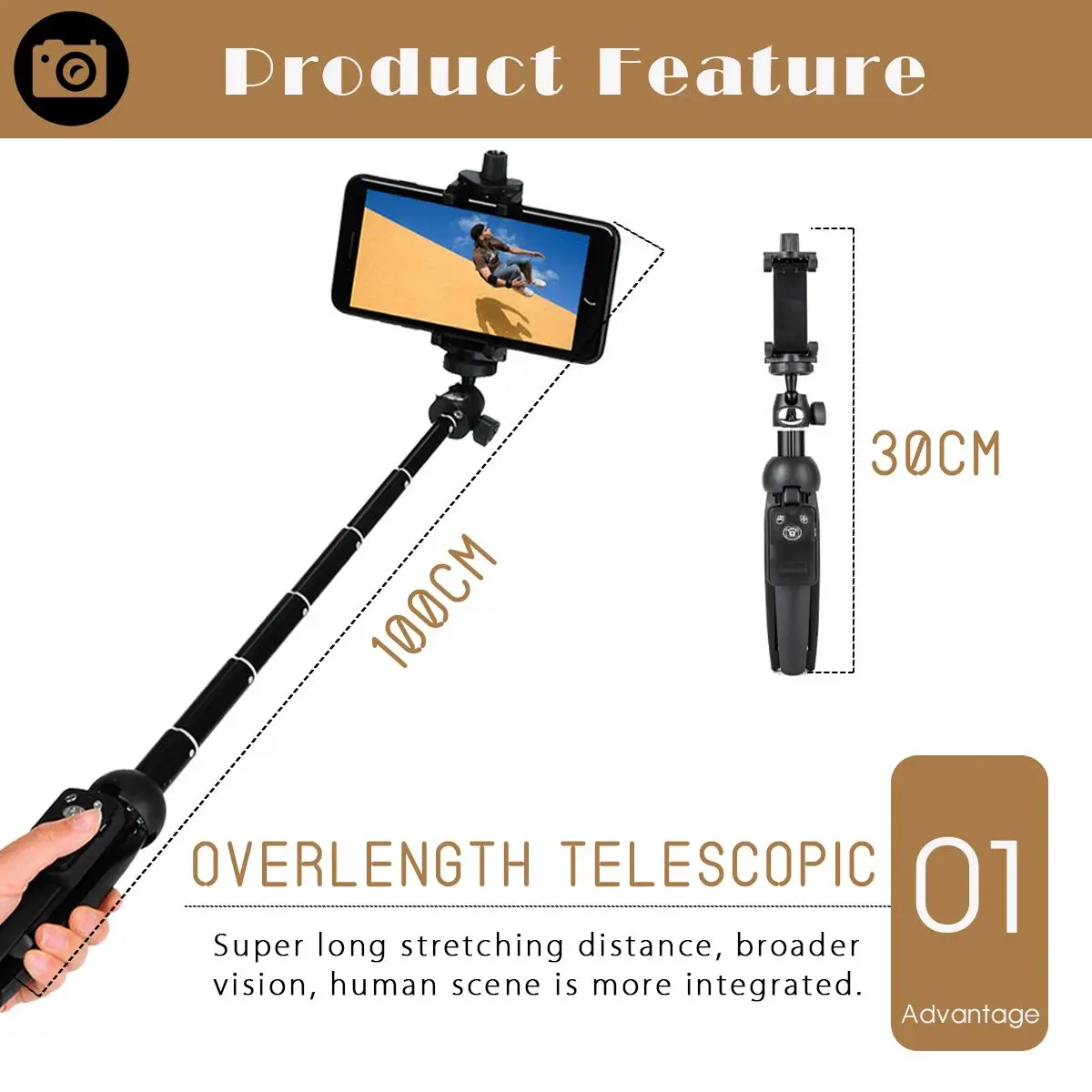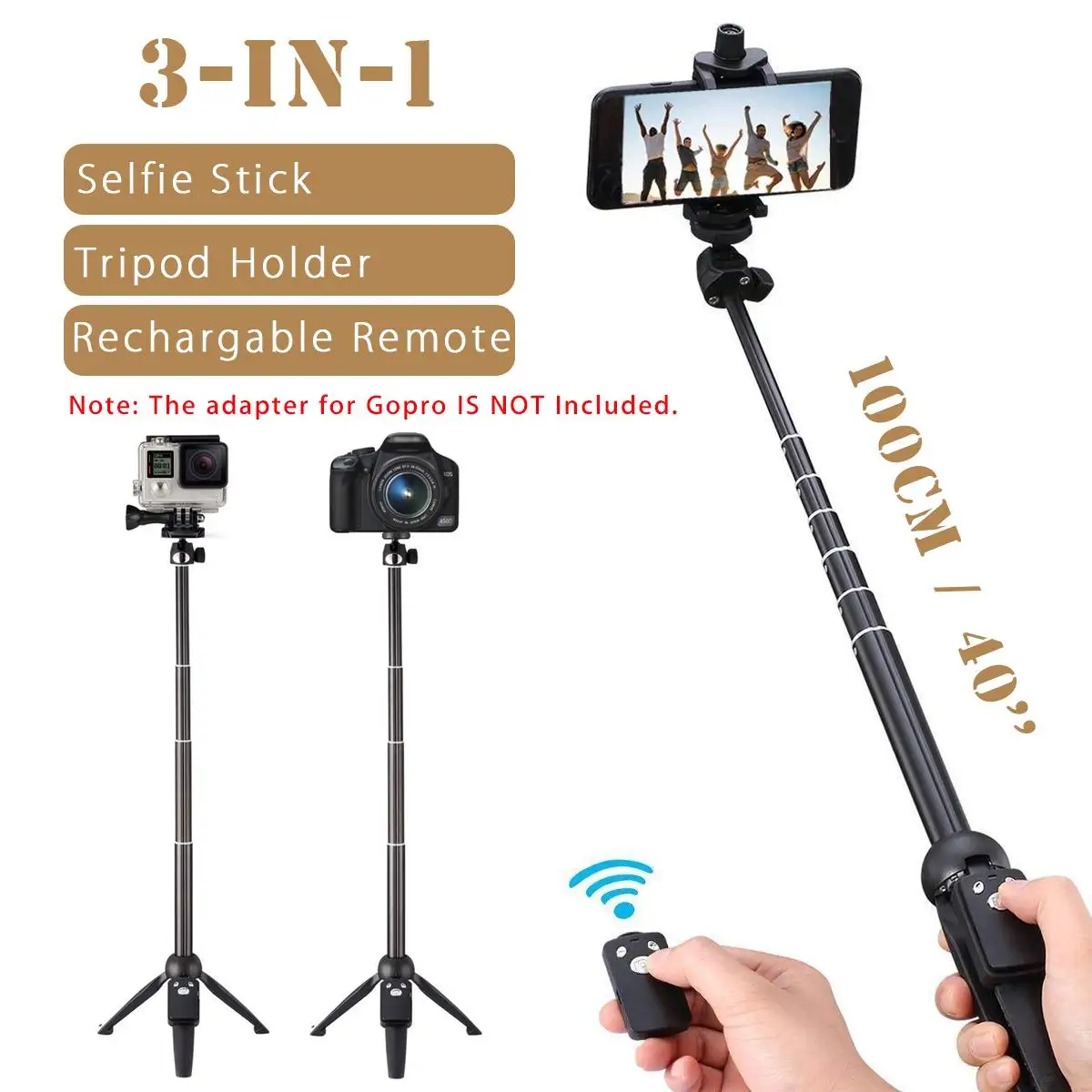 Product Name: 100cm ręczny statyw do kijka do selfie 3 w 1 przedłużany monopod z bluetooth do smartfonów SLR kamera akcji dla iPhone dla Gopro