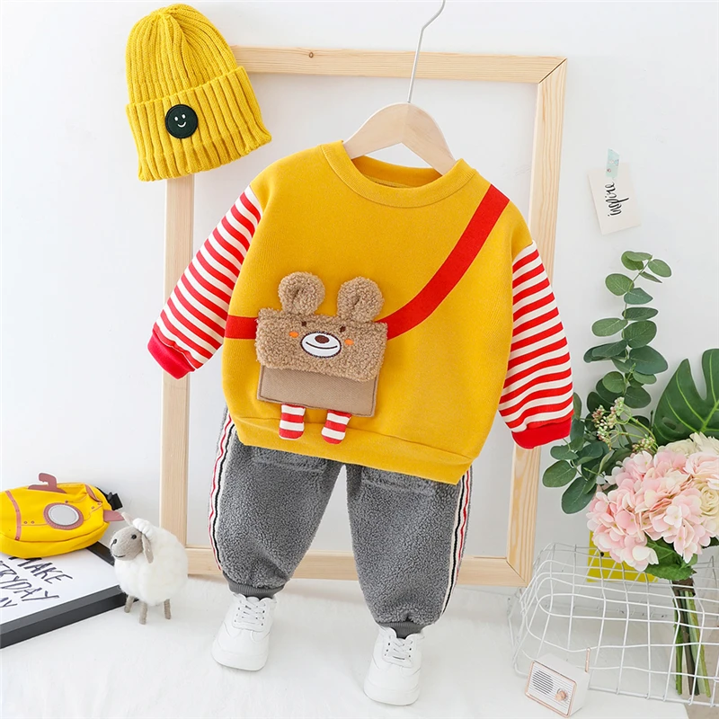 Product Name: HYLKIDHUOSE maluch ubrania dla niemowląt garnitury 2019 dziecko dziewczyny chłopcy odzież ustawia jesień pluszowe kreskówki topy spodnie dziecko dla dzieci kostium dla dzieci