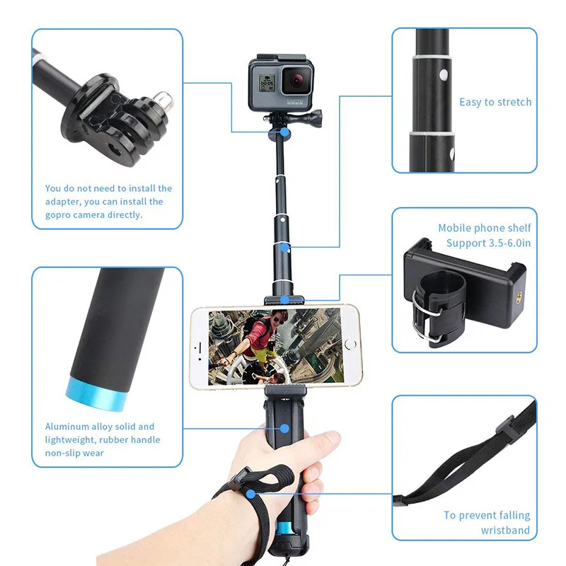 Product Name: Statyw aluminiowy słup Selfie Stick dla GoPro wysuwany monopod ręczny słup dla Go Pro Hero 8 7 6 5 SJCAM EKEN SONY Xiaomi Yi