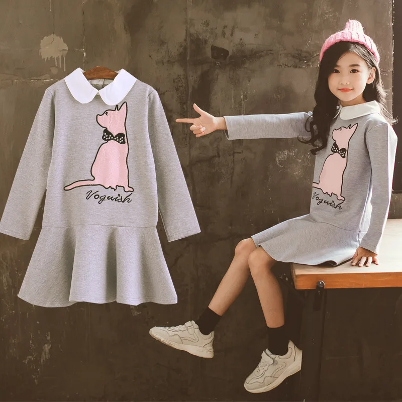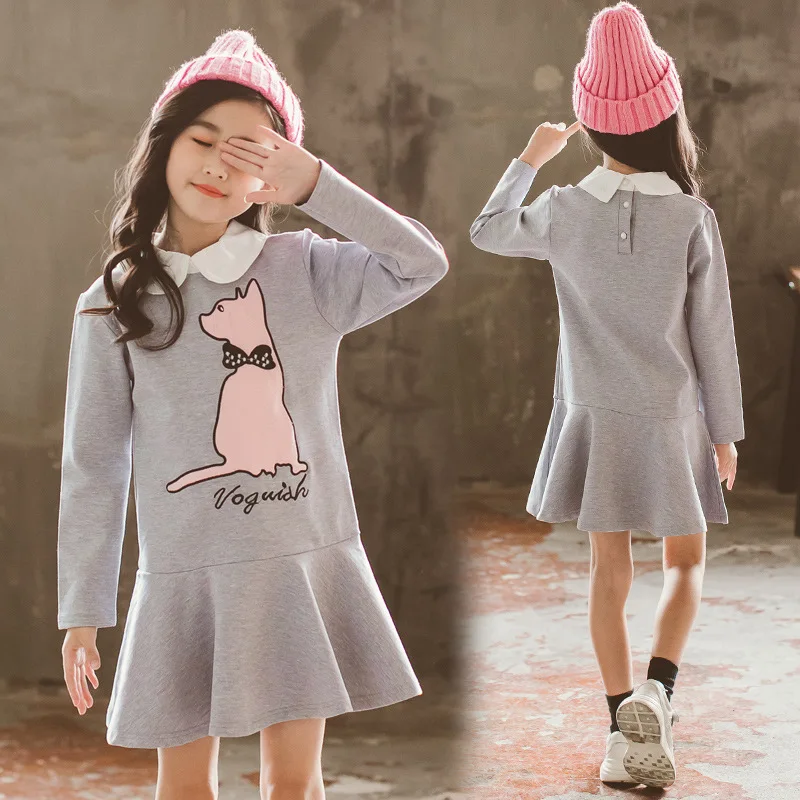 Special Offer Dziewczyny sukienka na jesień kot 2019 jesień kostium księżniczki koreański, z długimi rękawami nastolatek dzieci zima sukienka dla dziewczyn kostium 4 do 14 lat Discount 18% Today!