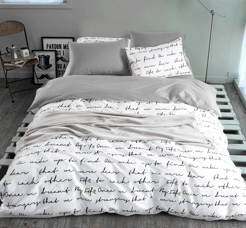 Special Offer Nadruk w litery kołdra zestaw osłon King aktywność komplety pościeli RU rozmiar amerykański, kapa na kołdrę zestaw arkuszy pościel do sypialni pościel szary Discount 27% Today!