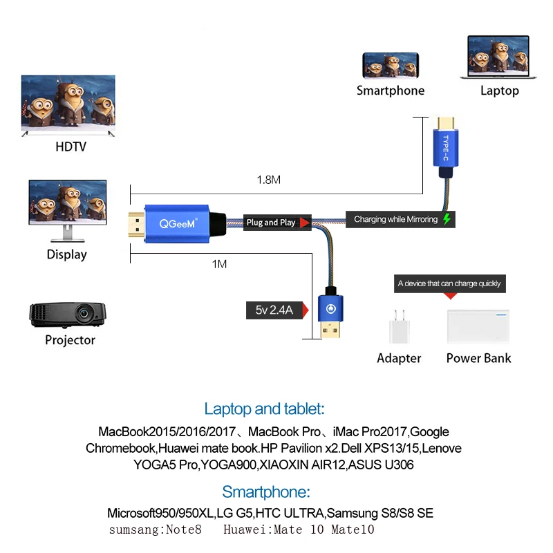 Product Name: QGeeM rodzaj usb c 3.1 kabel HDMI Thunderbolt adapter do macbooka Samsung S8 Huawei Mate 10 typu C do HDMI konwerter