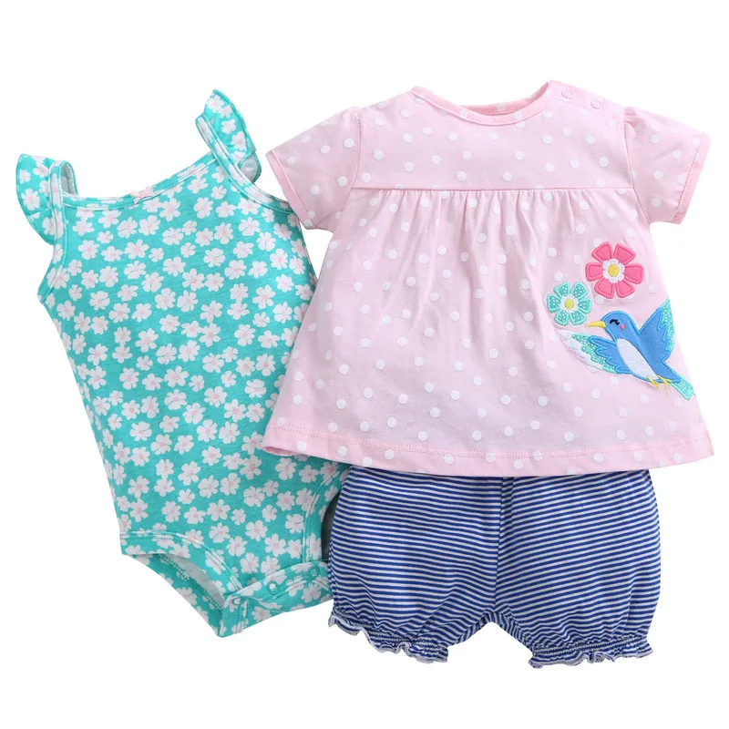 Product Name: 2018 niemowląt stroje dla dzieci zestaw 3 sztuk zestaw body + t shirt + bloomers zestaw zabawy w słońce polka dot motyl pasek
