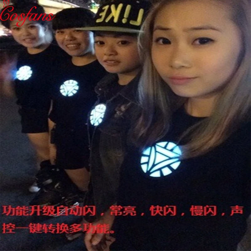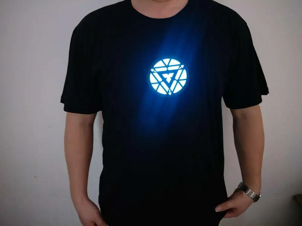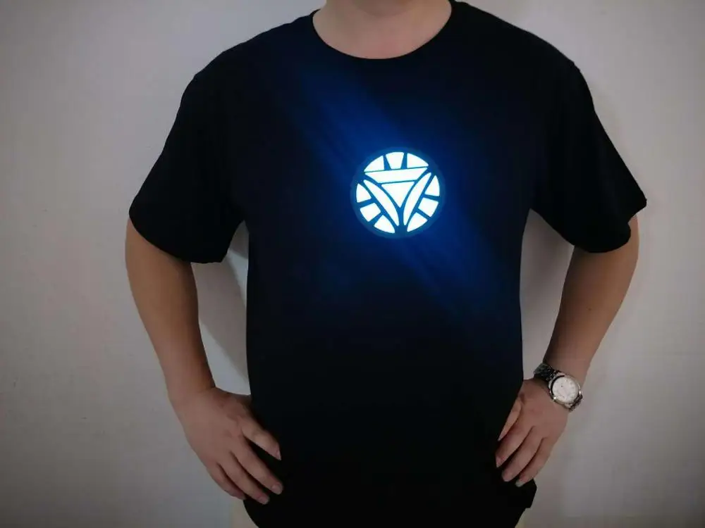 Product Name: Iron Man Arc reaktor Tony Stark Avengers Thor Hulk Led aktywowana dźwiękiem koszulka LED Light O neck koszulka z krótkim rękawem 2019