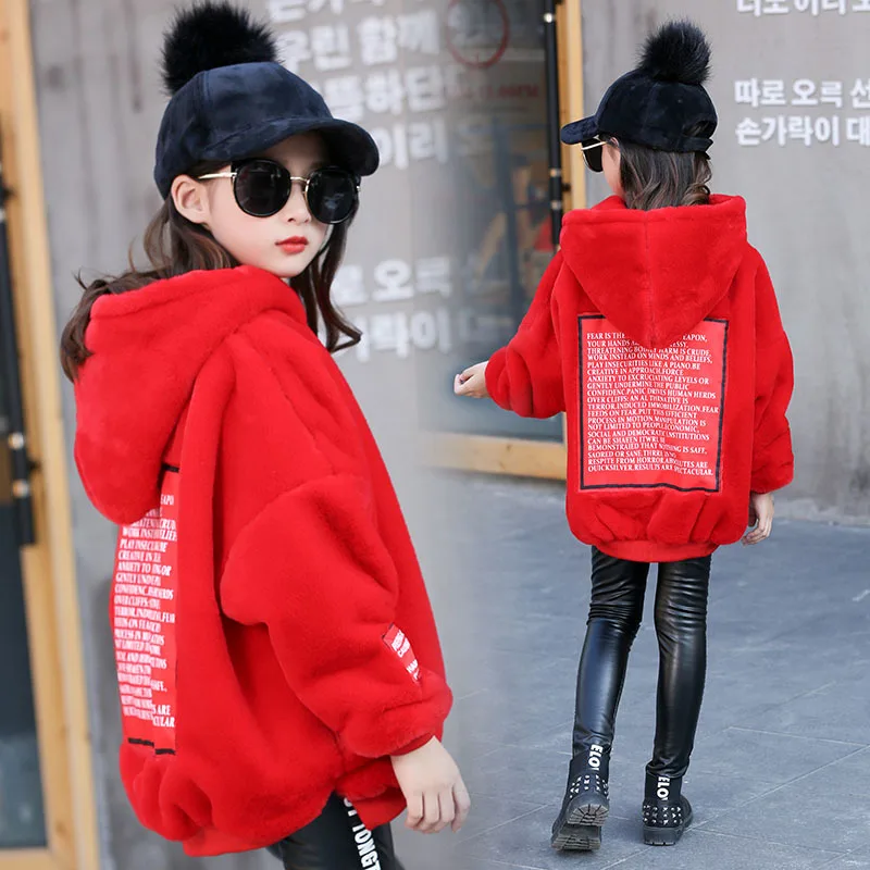 Product Name: Nastoletnia bluza zimowa dla dzieci jesień futro z kapturem gruba bluza w stylu casual dla dziewczynek topy stroje dla dzieci 8 10 lat ubrania dla dzieci