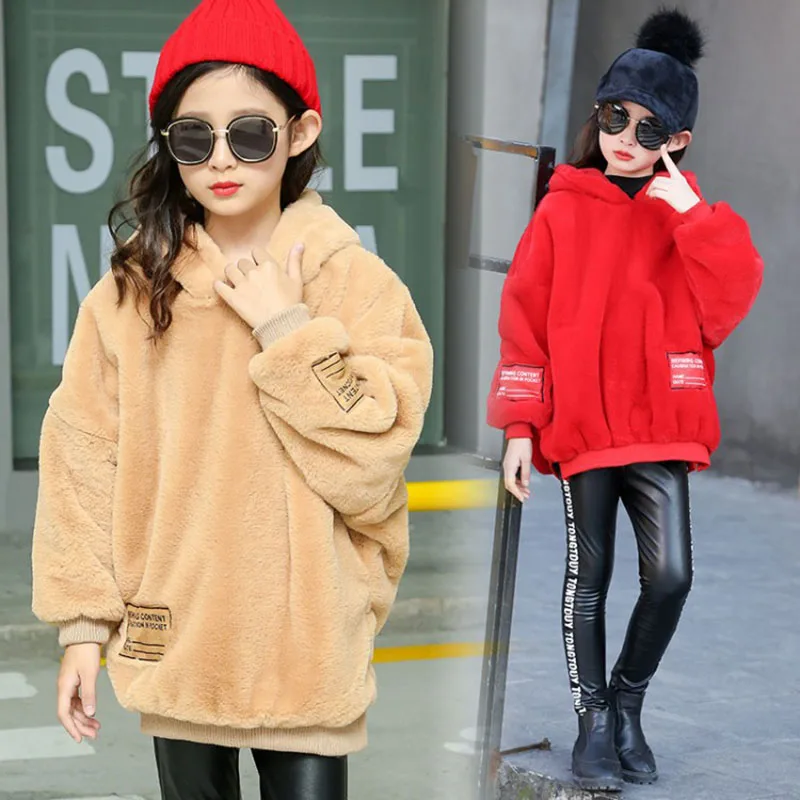 Special Offer Nastoletnia bluza zimowa dla dzieci jesień futro z kapturem gruba bluza w stylu casual dla dziewczynek topy stroje dla dzieci 8 10 lat ubrania dla dzieci Discount 50% Today!