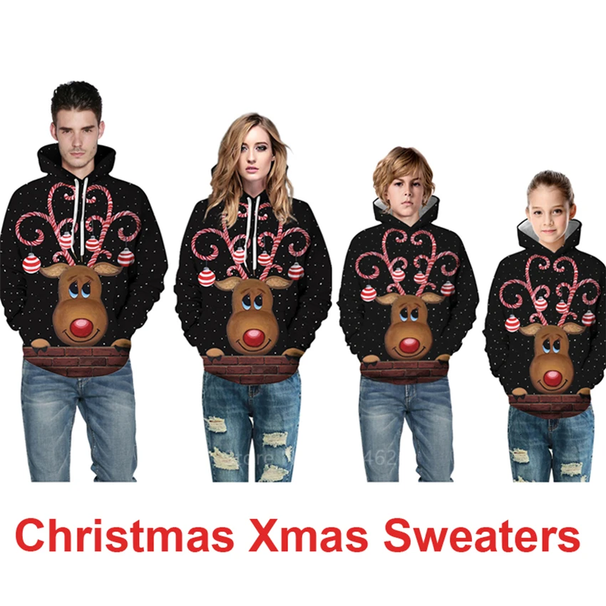 Product Name: Rodzina wygląd 2019 wiadomości świąteczne swetry Deer Cartoon mama i ja ubrania Plus rozmiar dla dzieci dziewczyna chłopiec rodzina dopasowanie ubrania boże narodzenie