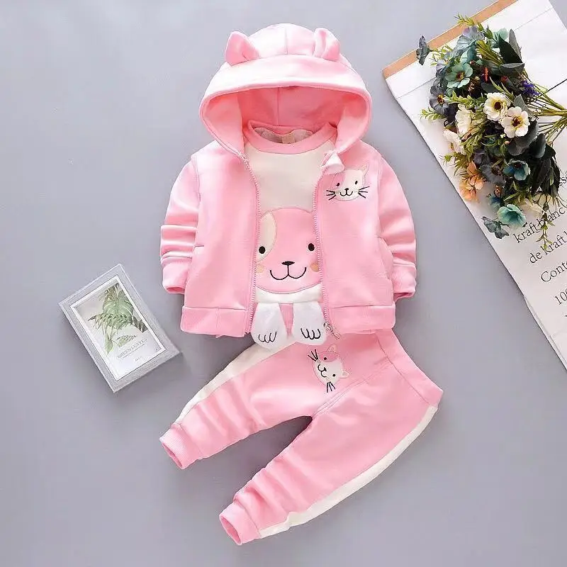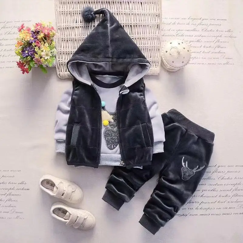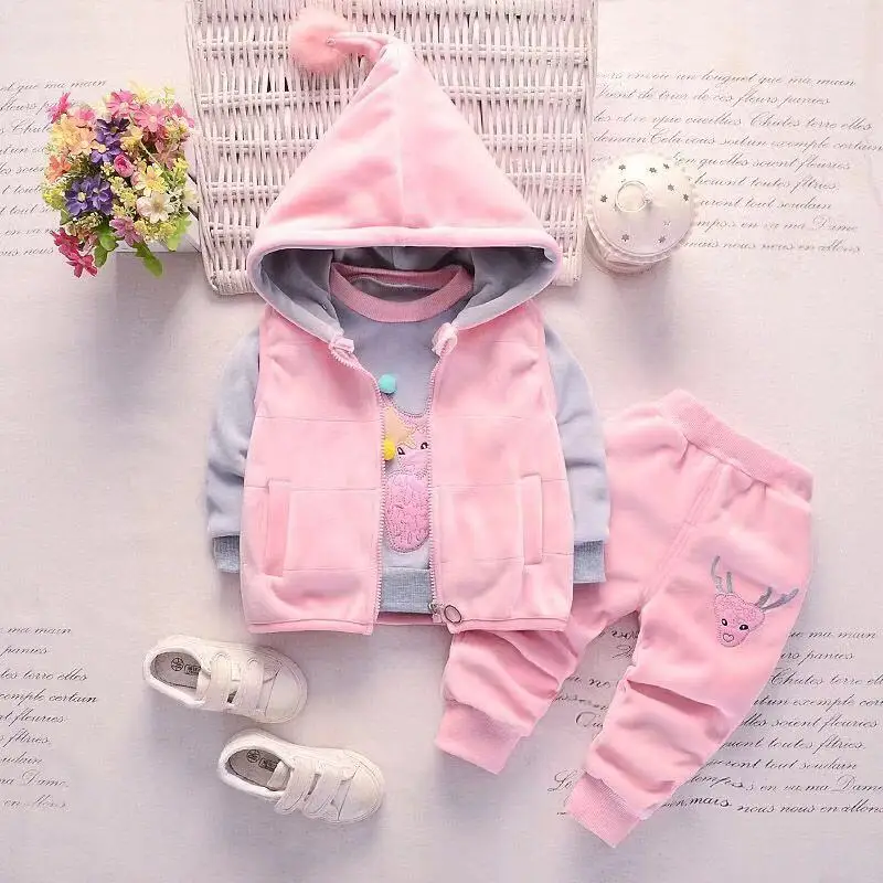 Product Name: Zima dziewczynek chłopców kot odzież zestaw dla dzieci grube ciepłe spodnie garnitur dzieci oraz aksamitna dres małych dzieci z kapturem kamizelka 3 sztuk 1 4T