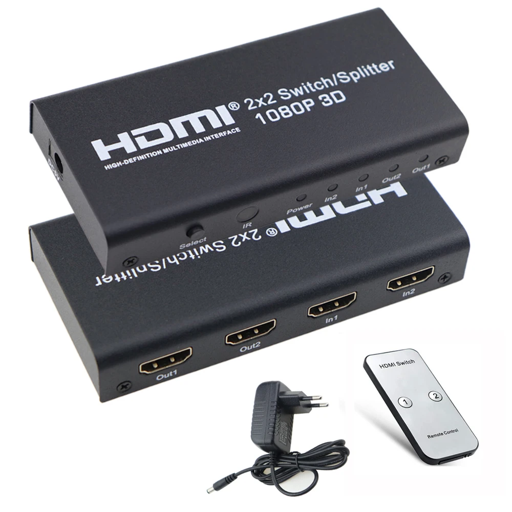 Special Offer 2X2 rozdzielacz hdmi przełącznik 2 w 2 wyjście przełącznik hdmi Box z pilotem IR i wspornik adaptera zasilania 3D 1080P dla HDTV PC PS3 PS4 Discount 30% Today!