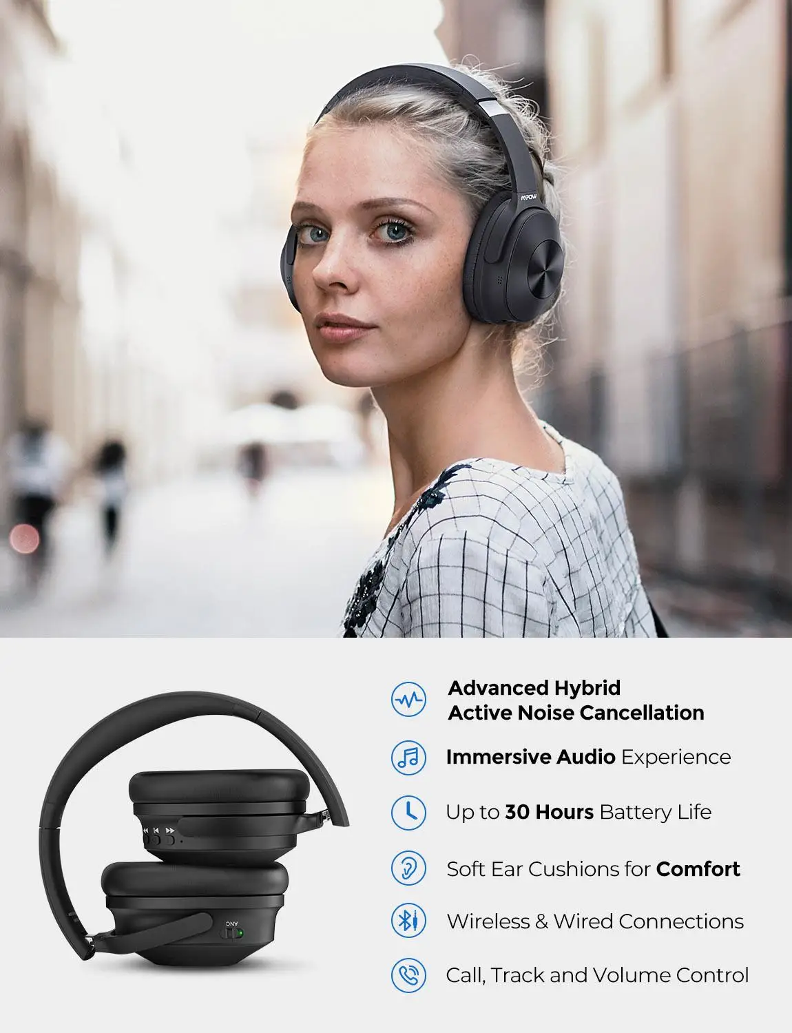 Product Name: Mpow H12 hybrydowy aktywne słuchawki z redukcją szumów Bluetooth 30 H czas odtwarzania 40mm sterownik bezprzewodowy przewodowy 2 w 1 do podróży pracy