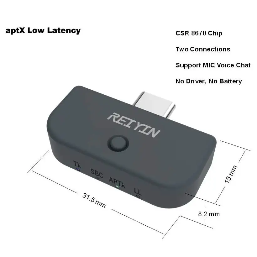 Product Name: AptX krótki czas oczekiwania nadajnik dźwięku Bluetooth 5.0 do przełącznika PS4 PC bezprzewodowy Adapter muzyczny typu C podwójne połączenie